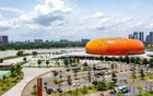 体育馆整体建筑采用沙糖桔造型设计,